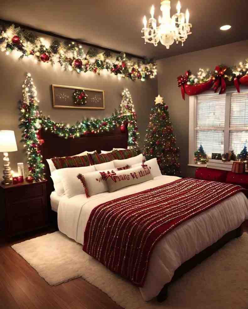 23.Cozy Christmas Bedroom Glow