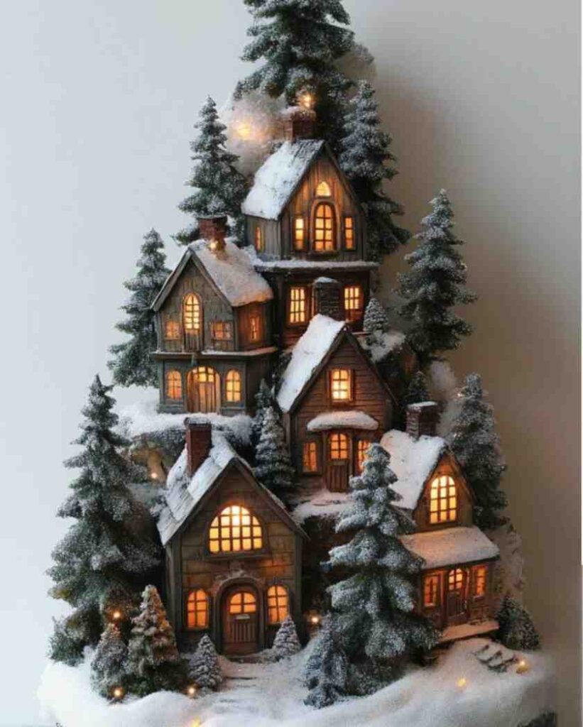 Magical and cozy, this snowy village decor brings a warm winter story into your home with tiny glowing windows and peaceful snowy trees. The soft lights create a festive atmosphere, making it perfect for exploring christmas decorations and christmas decoration ideas that feel dreamy and inviting.