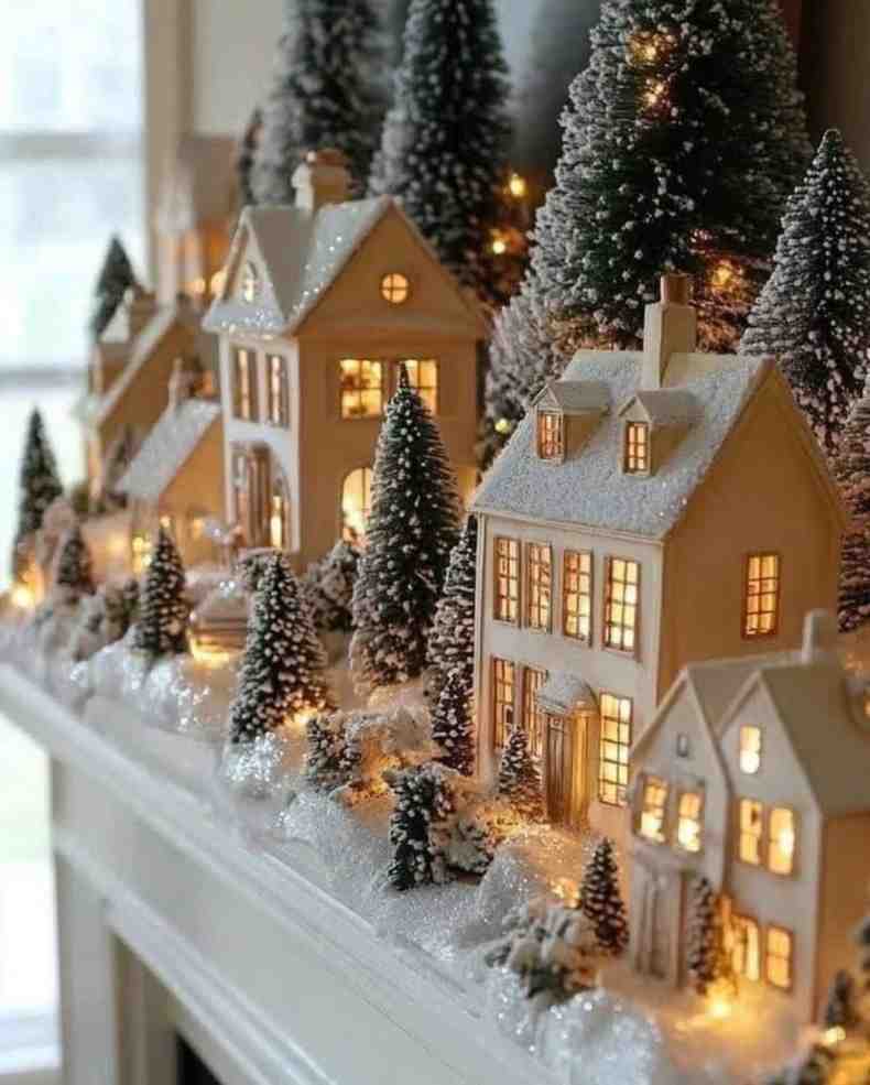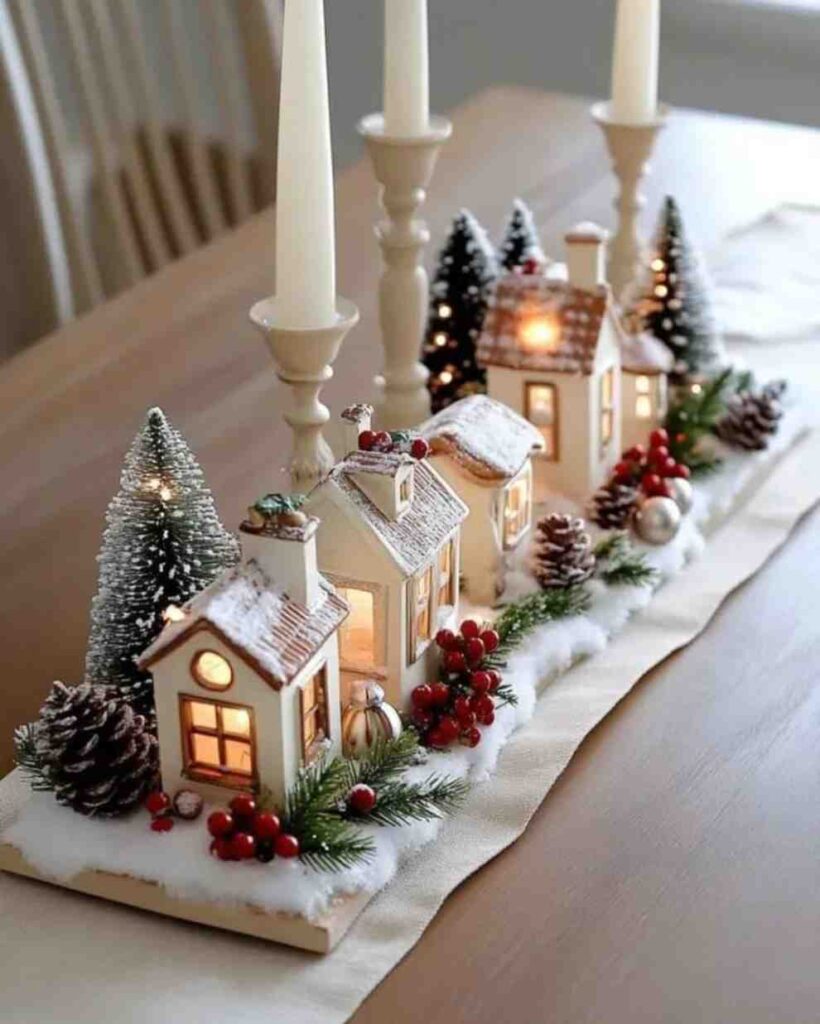 9.Cozy Christmas Village Table Decor